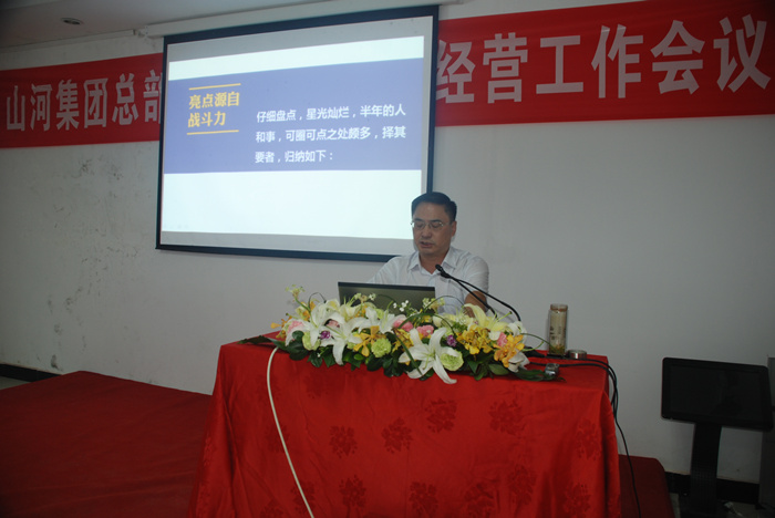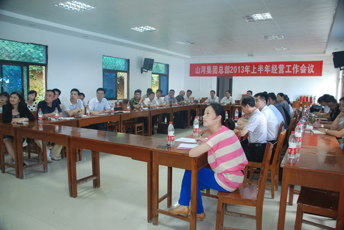 七月的大崎山之巔松濤陣陣,清風(fēng)拂面。山河集團(tuán)總部2013年上半年經(jīng)營工作會議于7月27日在這里隆重召開,這是集團(tuán)公司自湖北區(qū)域公司從總部分離之后召開的第一次半年經(jīng)營工作會議,參會人員共計(jì)五十余人,會議分上午場和下午場,由集團(tuán)公司總經(jīng)理龔衛(wèi)國同志主持。