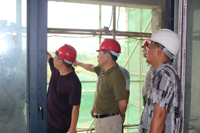 在正在裝修的樣板間內(nèi),董事長一行對櫥柜、地板等每個細節(jié)一一進行檢查,并聽取現(xiàn)場工程人員說明。因上周超強臺風(fēng)“尤特”對工程現(xiàn)場造成了部分損壞,董事長特別交代日后務(wù)必加強防范。為了能將房子早日交到業(yè)主手中,也對工程部做出要求:加快工程進度的同時,工程質(zhì)量也必須嚴格把關(guān)!在工作過程中遇到什么困難,及時向上反映,公司會作為強有力的后盾,給予支持。