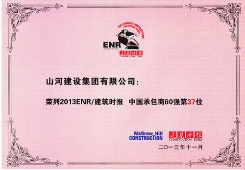 11月22日,2013ENR/建筑時(shí)報(bào)“中國(guó)承包商和工程設(shè)計(jì)企業(yè)雙60強(qiáng)”頒獎(jiǎng)典禮在廣西南寧市隆重舉行,住房和城鄉(xiāng)建設(shè)部政策研究中心、中國(guó)建筑業(yè)協(xié)會(huì)、中國(guó)勘察設(shè)計(jì)協(xié)會(huì)、廣西住建廳、廣西建筑業(yè)聯(lián)合會(huì)、廣西勘察設(shè)計(jì)協(xié)會(huì)等領(lǐng)導(dǎo)出席了頒獎(jiǎng)典禮并致辭。山河集團(tuán)成功入選,位列第37位,這是集團(tuán)首次申報(bào)并首次成功入選中國(guó)承包商60強(qiáng)企業(yè)。