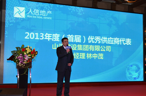 12月29日,山河集團(tuán)副總經(jīng)理兼湖北公司總經(jīng)理林中茂出席人信地產(chǎn)2013年度(首屆)供方代表大會(huì)。來自全球范圍內(nèi)的近200名優(yōu)秀供應(yīng)商代表應(yīng)邀參會(huì),山河集團(tuán)榮獲首屆“優(yōu)秀供應(yīng)商”。