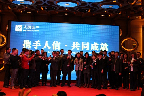 上圖為人信地產(chǎn)總裁辦領(lǐng)導(dǎo)與獲獎(jiǎng)供方共同祝酒