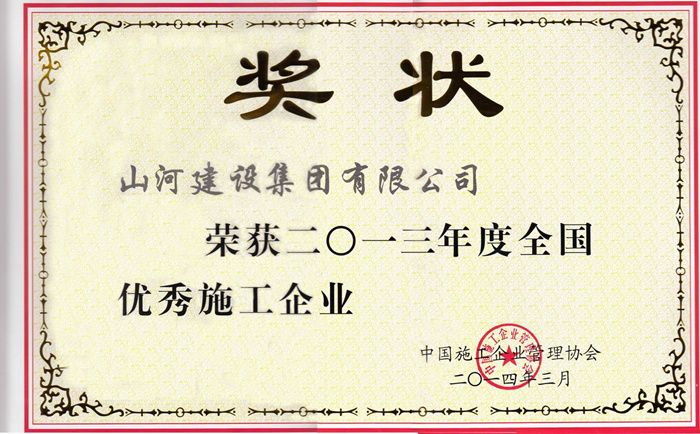 山河集團(tuán)榮獲2013年度“全國(guó)優(yōu)秀施工企業(yè)”稱號(hào)