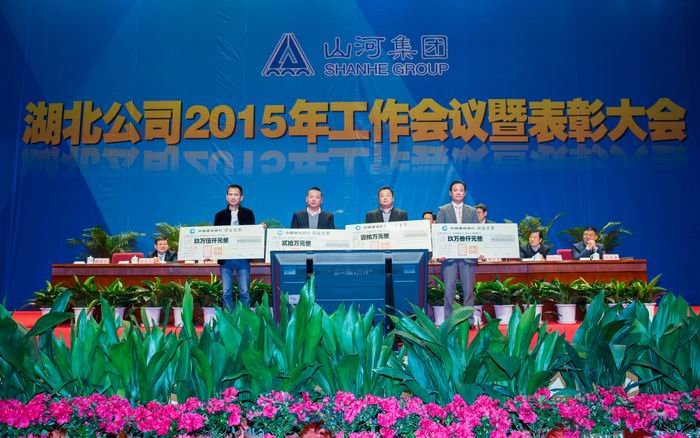 中午12時(shí)30分,隨著一片熱烈的掌聲,山河集團(tuán)2015年工作大會(huì)暨表彰大會(huì)圓滿落下帷幕。參加本次會(huì)議的還有:集團(tuán)總部及湖北公司全體員工(含黃岡、襄陽、恩施、江西);在漢分、子公司經(jīng)營(yíng)班子、項(xiàng)目經(jīng)理、現(xiàn)場(chǎng)主要管理人員、表彰人員等600余人。