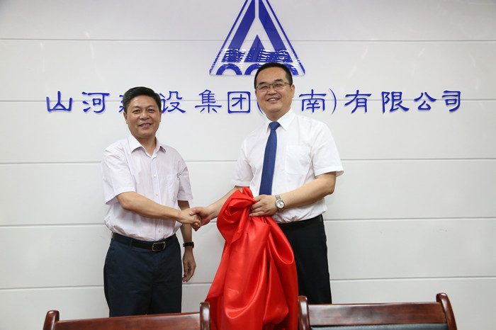 上午9:30,參觀河南公司辦公場所之后,山河集團(tuán)董事長程理財(cái)和河南公司總經(jīng)理馬文敏共同為河南公司揭牌。