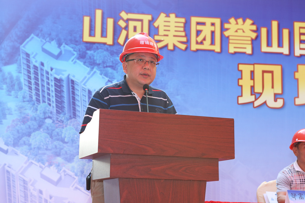 隨后,山河集團廣東公司總經(jīng)理李新軍上臺致辭。他首先向出席現(xiàn)場會的區(qū)建設局領導、主管部門領導以及業(yè)界同仁表示衷心的感謝。在致辭中,李總強調(diào),山河集團譽山國際項目成功召開現(xiàn)場觀摩會,得益于各級主管部門、各位領導對山河集團項目管理實踐工作的充分支持和信任。他表示,山河集團將強化安全生產(chǎn)基礎,大力實施綠色節(jié)能科技,為提升增城區(qū)建筑市場施工水平做出應有貢獻。