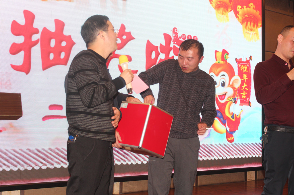 晚會(huì)中還穿插了抽獎(jiǎng)環(huán)節(jié),引起了大家的極大興趣,隨著三等獎(jiǎng)、二等獎(jiǎng)、一等獎(jiǎng)的抽取,現(xiàn)場(chǎng)都沸騰起來了,不斷掀起年會(huì)的高潮。此次晚會(huì)不僅給大家?guī)砹藲g聲笑語,同時(shí)也拉近了同事之間的距離。公司領(lǐng)導(dǎo)與員工親情互動(dòng)、激動(dòng)人心的抽獎(jiǎng)活動(dòng),讓掌聲、歡呼聲一直在會(huì)場(chǎng)上蕩漾。最后,整場(chǎng)年會(huì)在一片和諧、溫馨、歡樂的氣氛中圓滿結(jié)束。
