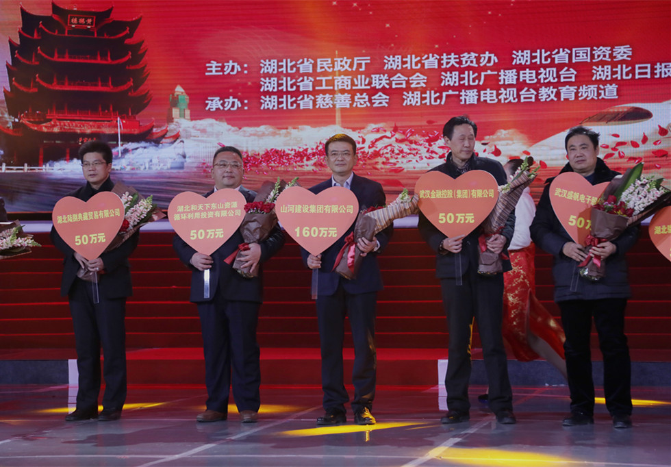 晚會(huì)現(xiàn)場(chǎng),集團(tuán)常務(wù)副總林中茂代表山河集團(tuán)舉牌捐贈(zèng)160萬(wàn)元,并獲得由湖北省慈善總會(huì)頒發(fā)的榮譽(yù)證書。捐贈(zèng)過(guò)程中,湖北省省委書記李鴻忠和省長(zhǎng)王國(guó)生分別發(fā)表重要講話,感謝長(zhǎng)期以來(lái)為全省扶貧事業(yè)作出了重要貢獻(xiàn)的企業(yè),希望企業(yè)發(fā)展不忘回報(bào)社會(huì),并一直熱心支持湖北省慈善事業(yè)的發(fā)展。
