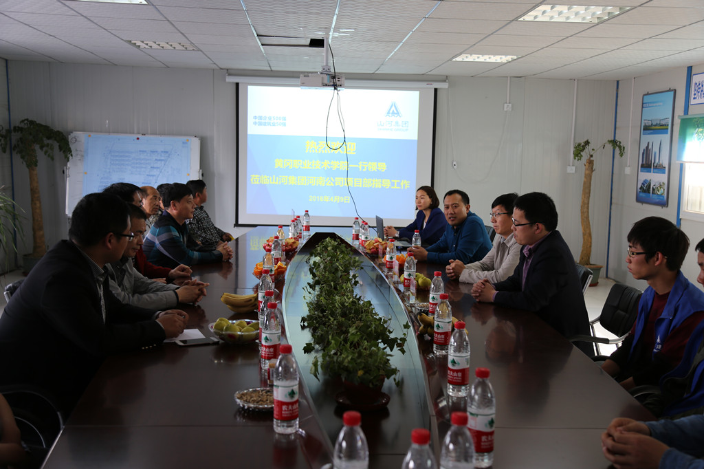 4月9日至10日,黃岡職業(yè)技術(shù)學院校黨委副書記王維華一行來到河南公司開展工地黨旗紅、共建黨支部、學生座談會活動,河南公司總經(jīng)理馬文敏、副總經(jīng)理余亮、劉軍等全程接待。