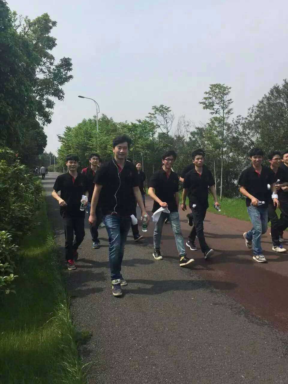 上午9點整,15支隊伍在總經(jīng)理熊善杰的帶領(lǐng)下,服裝統(tǒng)一、精神抖擻的從起點準(zhǔn)時出發(fā)。一路下來,隊伍中女同事們體力明顯有些疲憊,原本輕快的步伐也漸漸變得沉重起來,沿途的志愿者紛紛為大家能量補給、加油打氣,隊友們也你追我趕、互相鼓勵,腳步始終追隨著山河旗幟不言放棄。