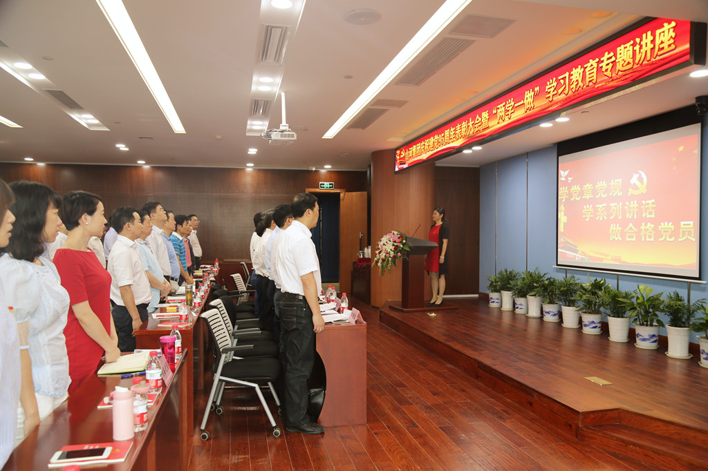 最后,集團(tuán)公司董事長、黨委委員程理財(cái)帶領(lǐng)與會(huì)人員回顧了建黨95年的發(fā)展歷程,與大家分享了學(xué)習(xí)黨課的體會(huì)。他表示,作為一名老黨員,自己將帶頭踐行“兩學(xué)一做” 學(xué)習(xí)教育,腳踏實(shí)地做合格黨員。他在講話中要求,全體黨員要“平常時(shí)候看得出來、關(guān)鍵時(shí)刻站得出來、危急關(guān)頭豁得出來”,為自己、為企業(yè)、為社會(huì)努力工作。