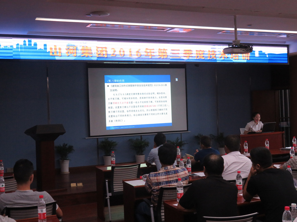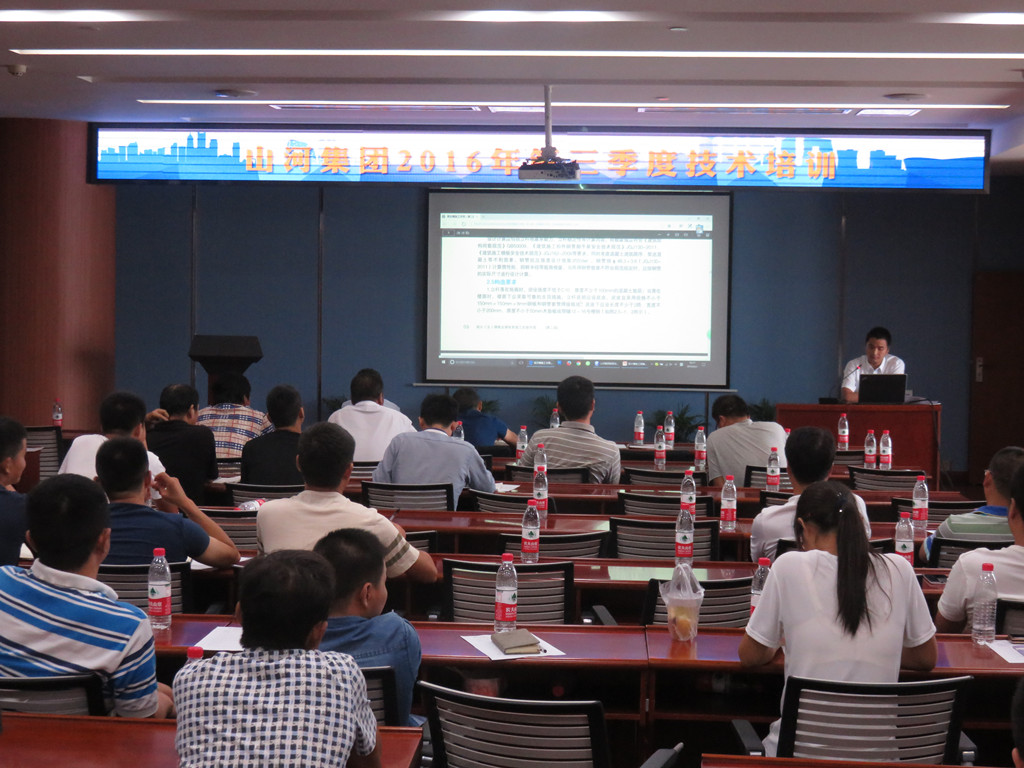 會上,技術(shù)部熊燕首先對規(guī)范要求、編制流程、方案內(nèi)容、構(gòu)造措施、軟件操作、作圖要求、常見問題以及方案審批作了較為精細的講解;隨后,技術(shù)發(fā)展中心主任張明星對集團公司最新修訂的《高大(支)模板技撐體系施工實施手冊》(第二版)進行了宣貫,針對實施工手冊中的具體實施內(nèi)容和重點注意事項做了深入的解讀。