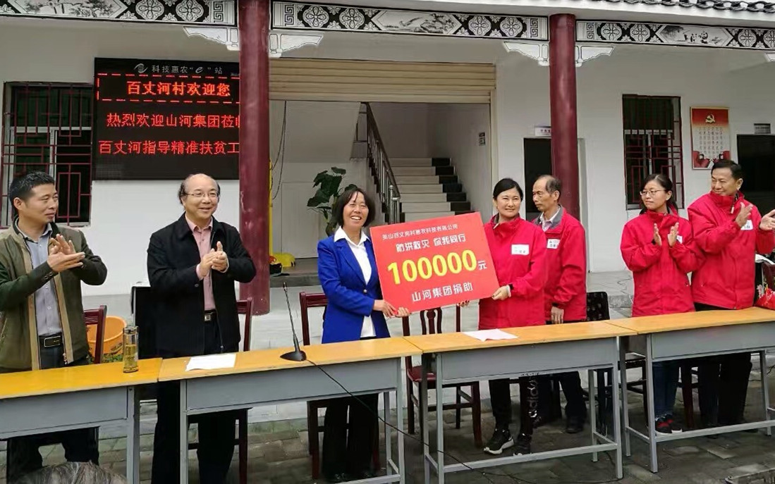 2013年,為更好落實湖北“千企幫千村、脫貧奔小康”活動,山河集團(tuán)董事長程理財一行來到百丈河村實地調(diào)研,并出資為百丈河村安裝20余盞太陽能路燈,參與修建村委會辦公大樓,改善了全村村民的生產(chǎn)和生活環(huán)境,為百丈河村安置就業(yè)30人。