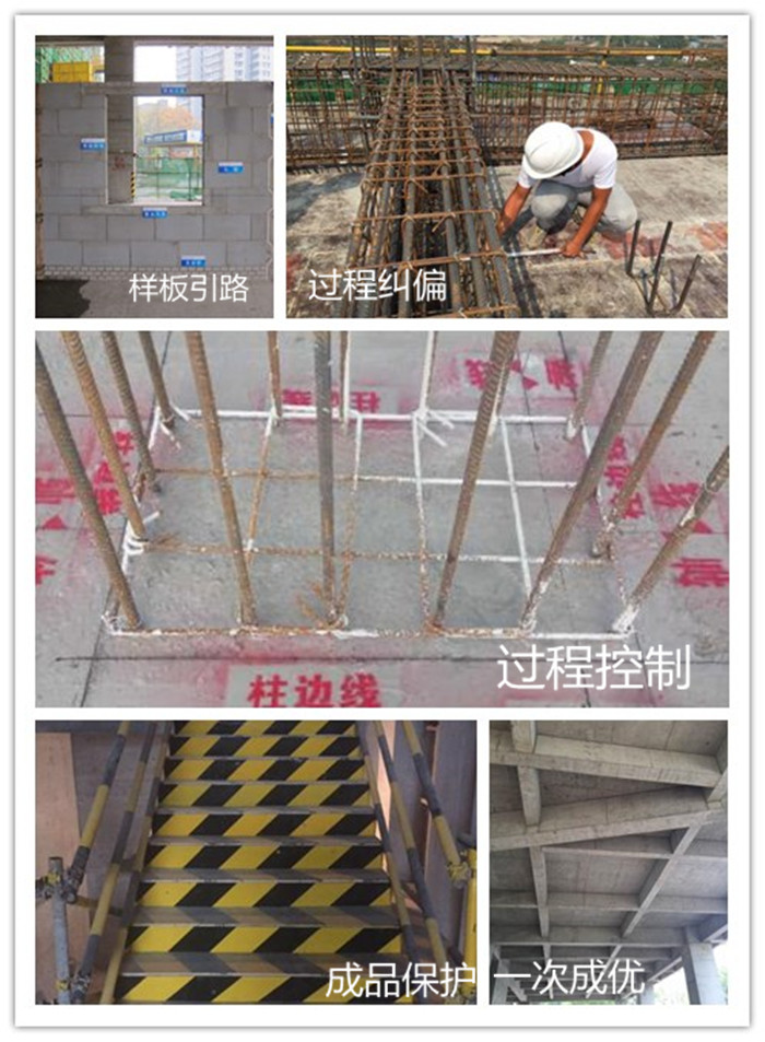 本工程充分發(fā)揚(yáng)“筑品質(zhì)山河,成百年基業(yè)”的企業(yè)愿景。在施工全過(guò)程中,質(zhì)量方面遵守樣板引路先行的原則,對(duì)過(guò)程進(jìn)行嚴(yán)格控制,發(fā)現(xiàn)問題及時(shí)糾偏,成品保護(hù)到位,確保一次成優(yōu)。