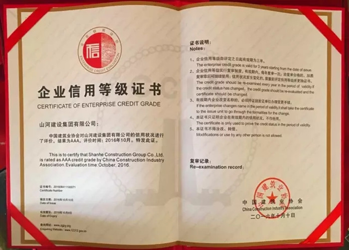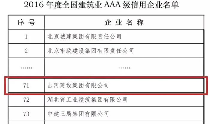 再傳喜訊 山河集團(tuán)榮獲“全國建筑業(yè)AAA級(jí)信用企業(yè)”稱號(hào)