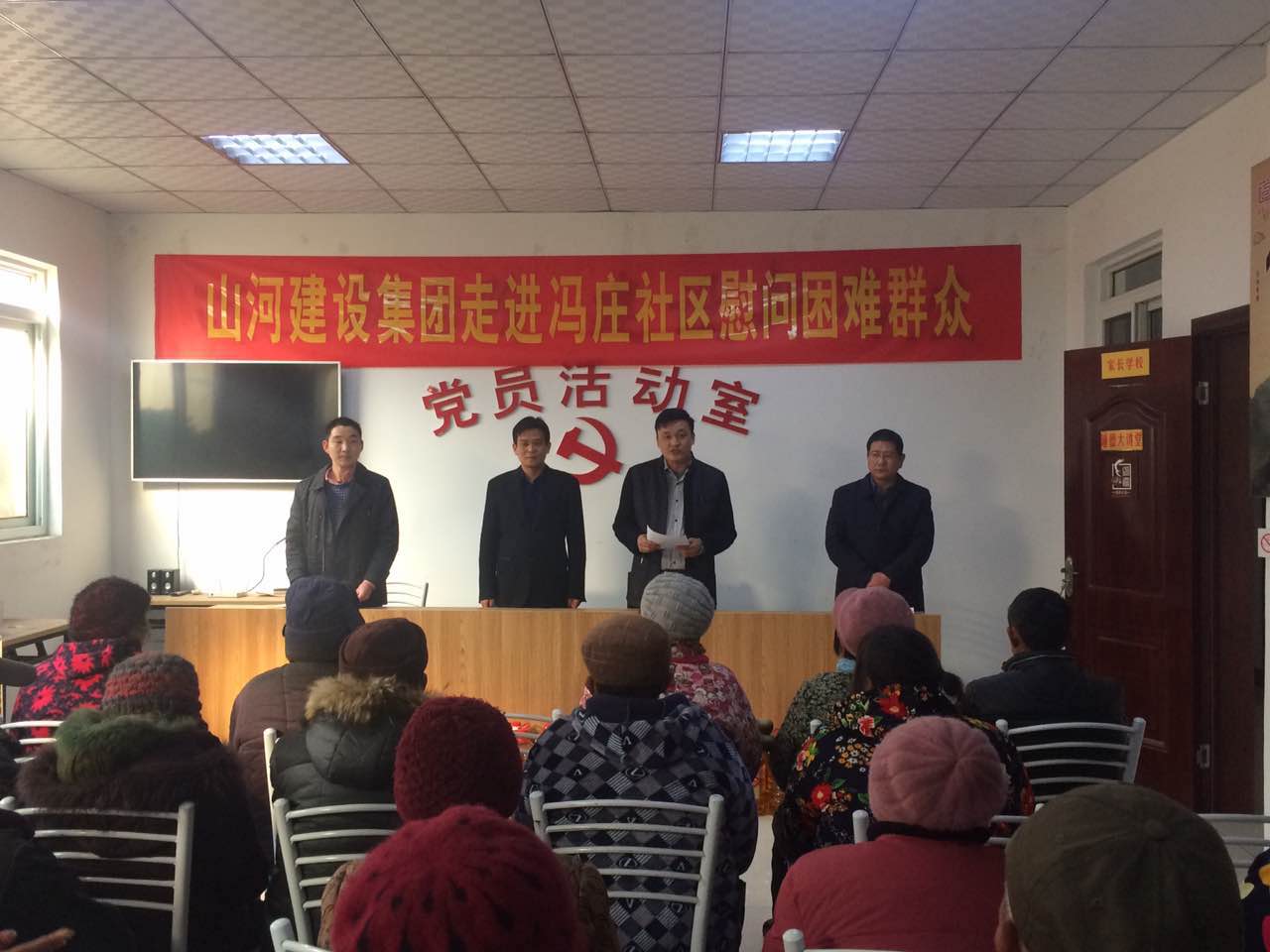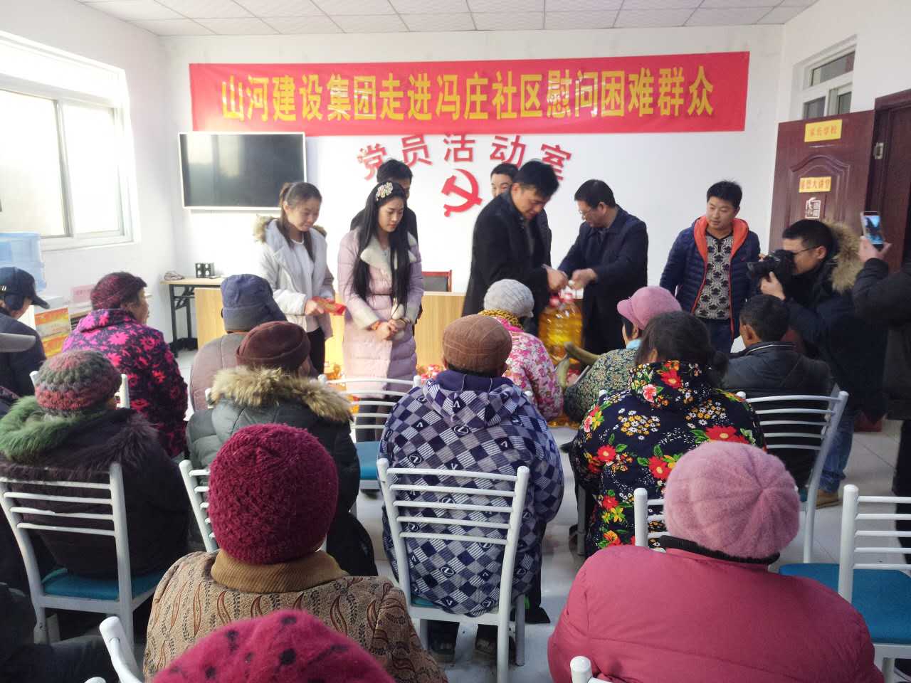1月17日下午,值此新春來臨之際,為答謝云龍區(qū)政府、馮莊社區(qū)領(lǐng)導(dǎo)及社區(qū)群眾對山河集團(tuán)徐州公司的幫助,徐州公司總經(jīng)理陳偉率全體員工走進(jìn)馮莊社區(qū),慰問社區(qū)20個困難家庭。