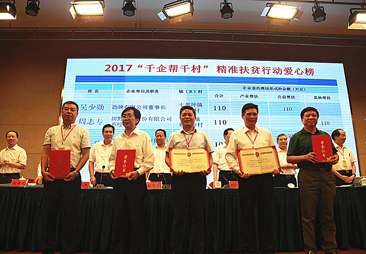會(huì)上,全省31家民營(yíng)企業(yè)與結(jié)對(duì)幫扶村現(xiàn)場(chǎng)簽約,總金額達(dá)到4350萬(wàn)元。會(huì)議現(xiàn)場(chǎng),山河集團(tuán)向建檔立卡貧困村團(tuán)風(fēng)縣回龍山鎮(zhèn)沈家大灣和淋山河鎮(zhèn)傅河村共捐資100萬(wàn)元,資助兩個(gè)村精準(zhǔn)脫貧,共劃全省扶貧“同心圓”。