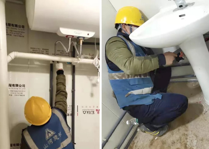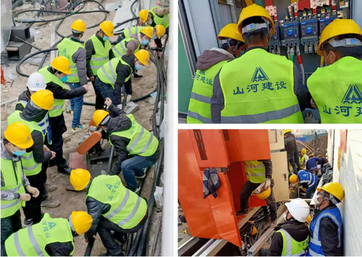 而這一天的背后,山河集團(tuán)“火神山”突擊小組的建設(shè)者們也迎來了最后的“沖刺”階段。凌晨,施工現(xiàn)場仍是一派熱火朝天,一邊是淋浴間、洗漱臺等設(shè)備設(shè)施在進(jìn)行最后收尾安裝和檢查,一邊水電工人正在緊鑼密鼓地安裝配電房的電纜……施工人員挑燈夜戰(zhàn),24小時不眠不休,為了能在2月3日正式收治病患全力沖刺。