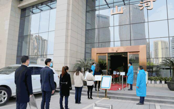 武昌徐東大街岳家嘴立交橋旁,高度286米的山河大廈格外引人注目。4月8日,大部分入駐企業(yè)正式復(fù)工,返崗人員依次排隊(duì)進(jìn)入辦公區(qū)域,拉開(kāi)了加速“重啟”的序幕。