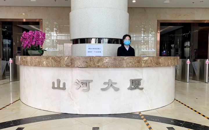 物業(yè)服務(wù)中心加強(qiáng)對(duì)進(jìn)出車(chē)輛及人員的管控,大廈地庫(kù)通往寫(xiě)字樓的進(jìn)出口暫時(shí)封閉,大堂出入口分開(kāi)設(shè)置。返崗人員均需提前進(jìn)行登記審核,手機(jī)出示準(zhǔn)許進(jìn)入的綠色登記碼,統(tǒng)一從大堂入口經(jīng)測(cè)溫、消毒后有序進(jìn)入。