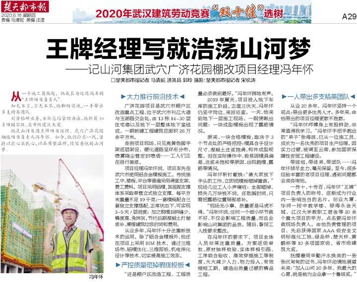 撫摸著用辛勤汗水換來的一張張沉甸甸的證書,馮年懷動情地展望未來:“加入山河20多年,我最大的心愿,就是能為企業(yè)拿一個魯班獎。”