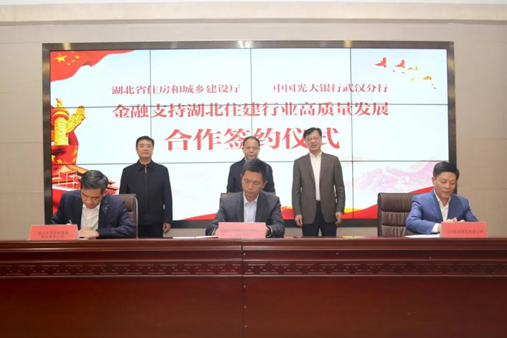 10月30日,由湖北省住房和城鄉(xiāng)建設(shè)廳、中國(guó)光大銀行武漢分行主辦的金融支持湖北住建行業(yè)高質(zhì)量發(fā)展合作簽約儀式在省住建廳舉行。湖北省人民政府副省長(zhǎng)萬勇,省住建廳黨組書記、廳長(zhǎng)李昌海,黨組副書記、副廳長(zhǎng)張弘,光大銀行武漢分行黨委書記、行長(zhǎng)譚夢(mèng)湘,黨委委員、副行長(zhǎng)唐紅斌等領(lǐng)導(dǎo)出席了簽約儀式。