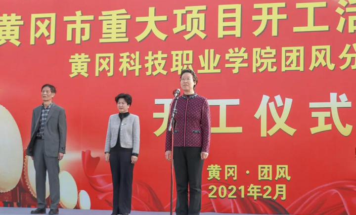 上午8時(shí)58分,在活動(dòng)主會(huì)場(chǎng)——黃岡科技職業(yè)學(xué)院團(tuán)風(fēng)分校項(xiàng)目施工現(xiàn)場(chǎng),項(xiàng)目開工儀式正式開始。儀式上,黃岡市委副書記、市長邱麗新宣布項(xiàng)目開工,這標(biāo)志著團(tuán)風(fēng)縣第一所高等院校的建設(shè)拉開序幕。