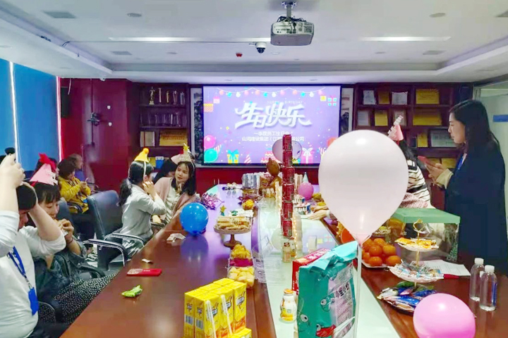 游戲結束后,伴隨著歡快的《生日快樂》歌聲,在搖曳的燭光里,壽星們紛紛許下自己的生日愿望,公司領導為大家送上精心準備的生日禮物。隨后,午后茶歇時刻正式開啟,美味的蛋糕、清甜的水果、豐富的小食品伴隨在場的每一位同事度過了一段美好的時光。