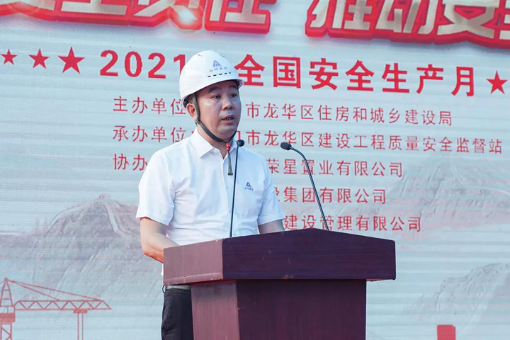 活動伊始,海南公司副總經(jīng)理李發(fā)生作為企業(yè)代表發(fā)言。他對山河集團(tuán)、海南公司及昌榮星城項(xiàng)目的情況進(jìn)行了介紹,分享了集團(tuán)安全管理工作的做法和經(jīng)驗(yàn),并承諾公司將牢固樹立安全發(fā)展理念,堅(jiān)決筑牢安全生產(chǎn)防線,確保項(xiàng)目建設(shè)穩(wěn)步推進(jìn)。