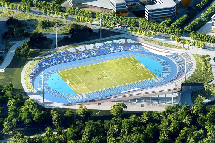 海南公司承建的試驗區(qū)體育場項目是園區(qū)的重要組成部分,總用地面積約5.48萬平方米,建筑面積5307平方米,采用裝配式施工。體育場建筑層數為地上二層,總高度24米,并新建室外運動場1座(含400米標準競賽場地22000平方米)。