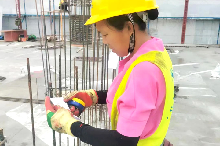 ▲廣州益云智慧物流產(chǎn)業(yè)孵化基地建設(shè)項目工人在進(jìn)行柱箍筋綁扎