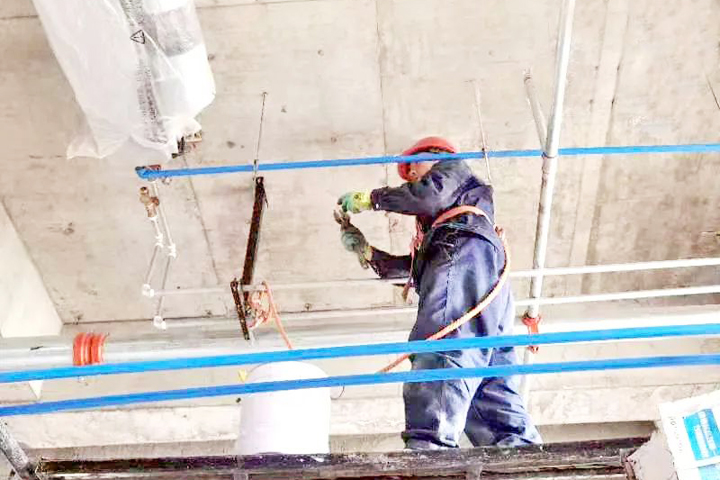 ▲克拉瑪依市獨山子區(qū)匯民國際商業(yè)中心項目工人正在進(jìn)行地下室安裝工程施工