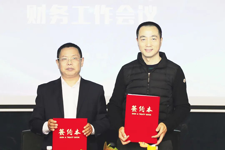 控股集團總裁李洪和李先寶簽訂財務(wù)團隊年度目標責任狀。李先寶和融資及核算監(jiān)管、稅管、資管業(yè)務(wù)負責人簽訂年度目標責任狀。