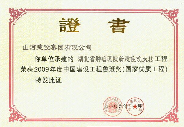10月26日,中國(guó)建筑業(yè)協(xié)會(huì)正式發(fā)文,公布了2009年度中國(guó)建設(shè)工程魯班獎(jiǎng)評(píng)選結(jié)果。經(jīng)過初審、復(fù)查、公示等過程,共有99項(xiàng)工程獲獎(jiǎng),湖北省有3項(xiàng)工程登榜,山河集團(tuán)承建的湖北省腫瘤醫(yī)院新建住院大樓項(xiàng)目獲此殊榮。消息傳來,公司上下一片歡騰。